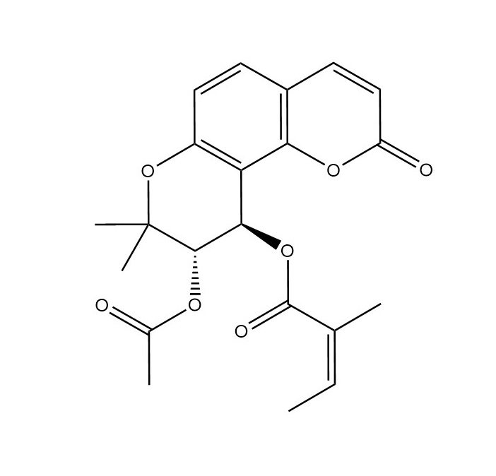 白花前胡丁素|73069-28-0[1]. Rao MR, et al. Effects of praeruptorin C and E isolated from 'Qian-Hu' on swine coronary artery and guinea-pig atria. Eur J Pharmacol. 1988 Oct 18;155(3):293-6.