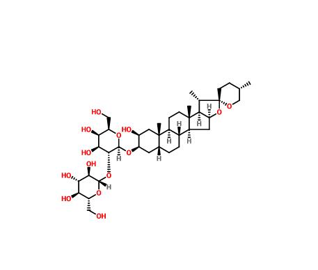 重樓皂苷E|76296-73-6[1]. Li-ping Kang, et al. Steroidal glycosides from the rhizomes of Anemarrhena asphodeloides and their antiplatelet aggregation activity. Planta Med. 2012 Apr;78(6):611-6.