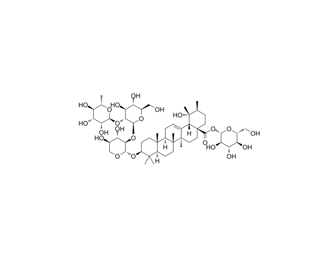 【英文別稱(chēng)】 Urs-12-en-28-oic acid, 3-[(O-6-deoxy-α-L-mannopyranosyl-(1→2)-O-β-D-glucopyranosyl-(1→2)-β-D-xylopyranosyl)oxy]-19-hydroxy-, β-D-glucopyranosyl ester, (3β,20β)-