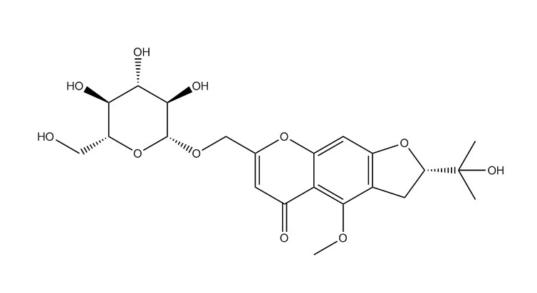 【英文別稱】 (S)-2-[1-(beta-D-Glucopyranosyloxy)-1-methylethyl]-2,3-dihydro-4-methoxy-7-methyl-5H-furo[3,2-g][1]benzopyran-5-one